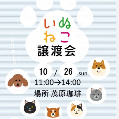 2025年10月25日 お知らせ 10/26(土)11:00~14:00に茂原珈琲様に「いぬねこ譲渡会」にLink toの保護犬のこちゃんが参加させていただきます。 ぜひ皆様のご参加をお待ちしております☆ イベントの詳細はこちらからご覧ください。 里親募集中のワンコの一覧はこちらからご覧下さい。