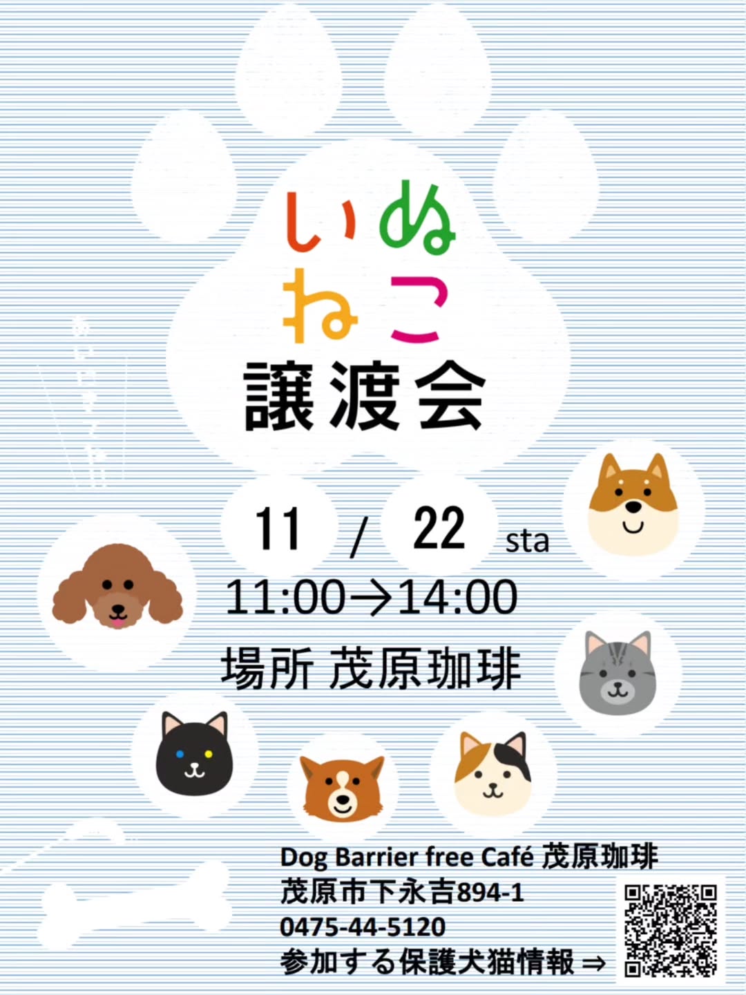 11/22(土)いぬねこ譲渡会@茂原珈琲へ参加のお知らせ
