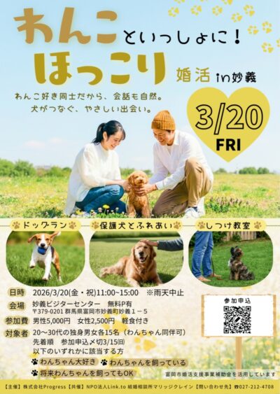 3/20に開催されるほっこりペット婚in妙義で当団体の保護犬たちが参加します☆